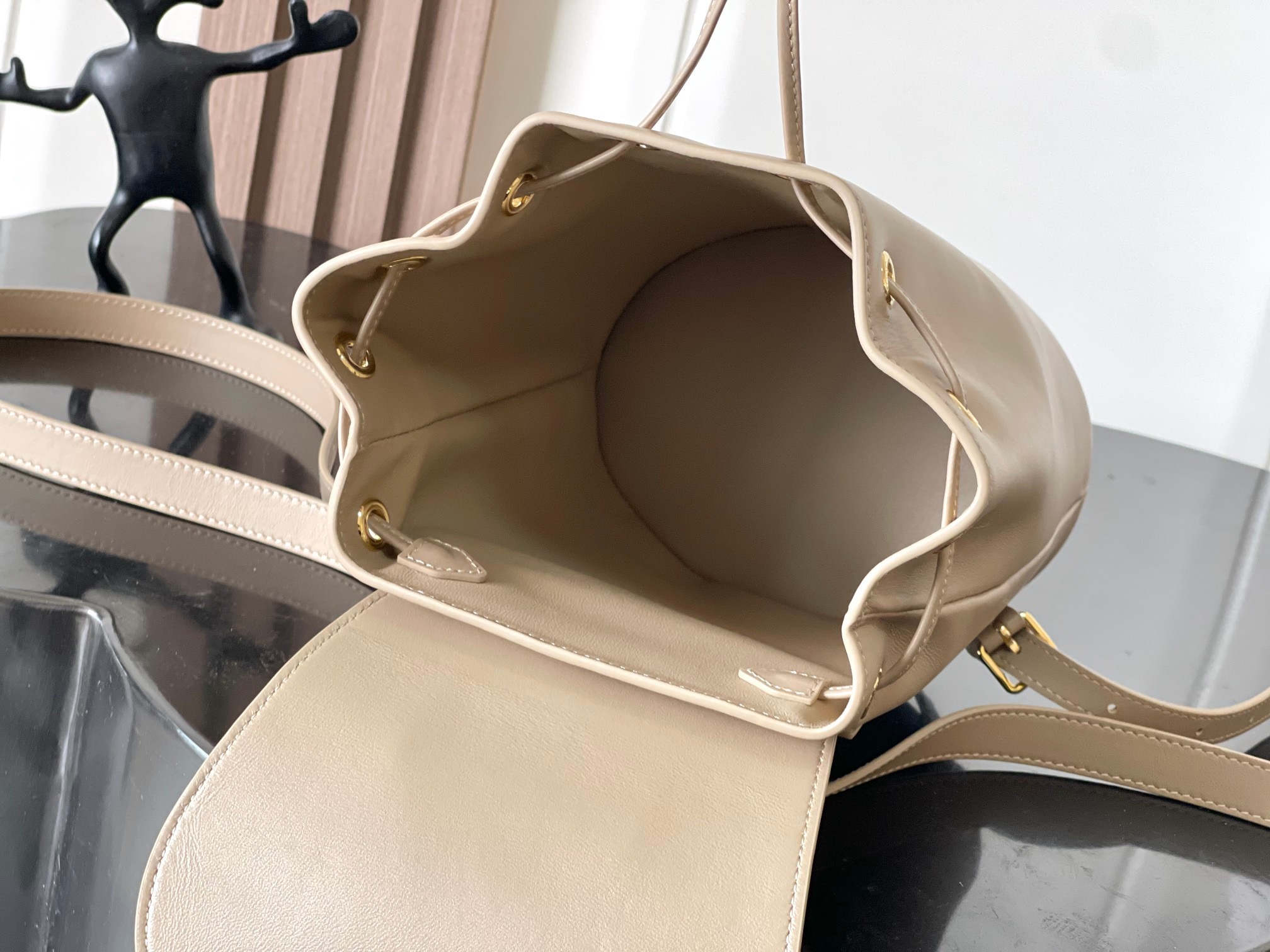 CELINE BONNIE Smooth Leather Backpack Material: Smooth cowhide leather with lambskin lining Carrying Options: Hand-carry, double-shoulder, and single-shoulder Size: 25 x 18 x 13 cm Model Number: 118703