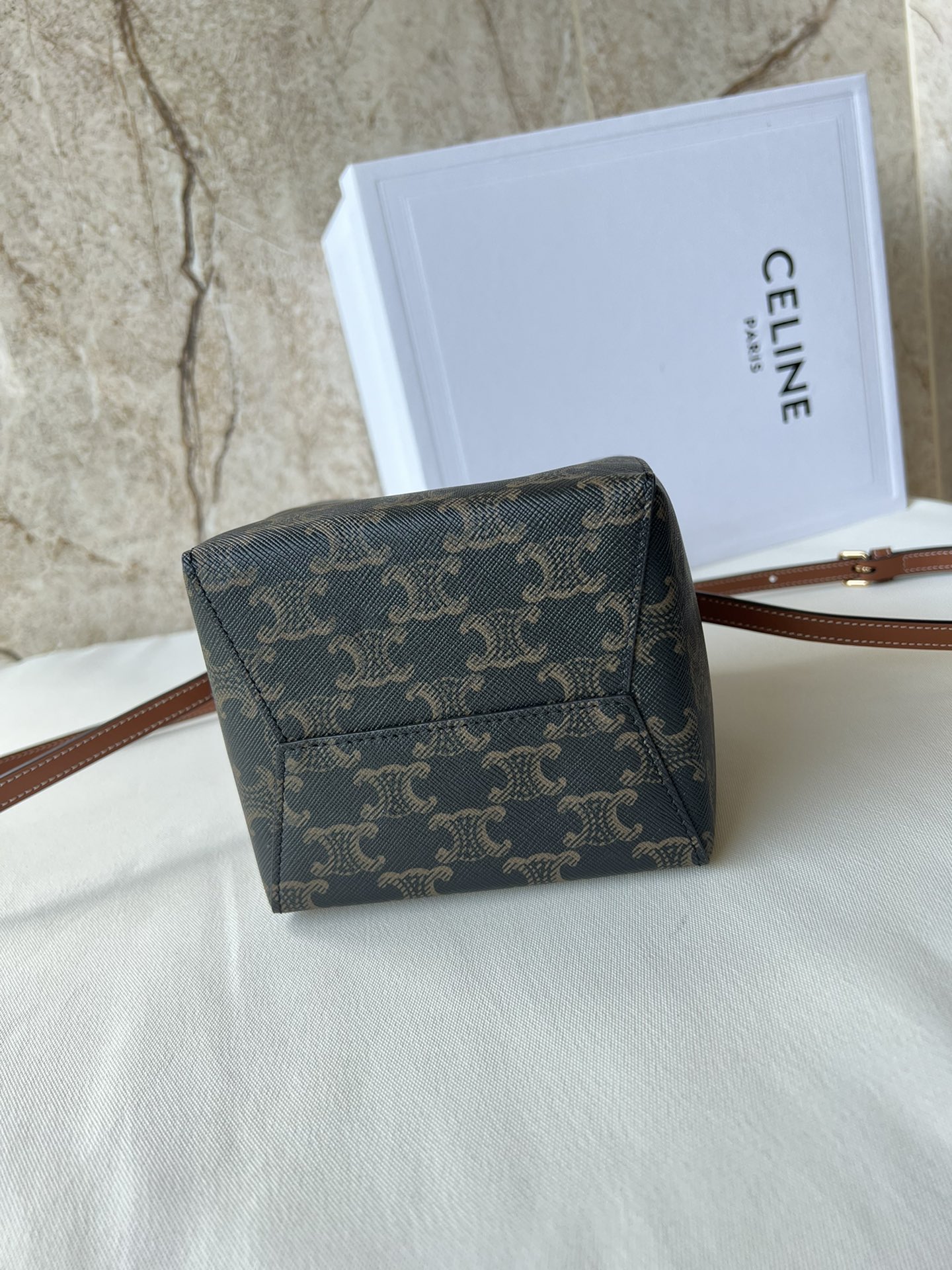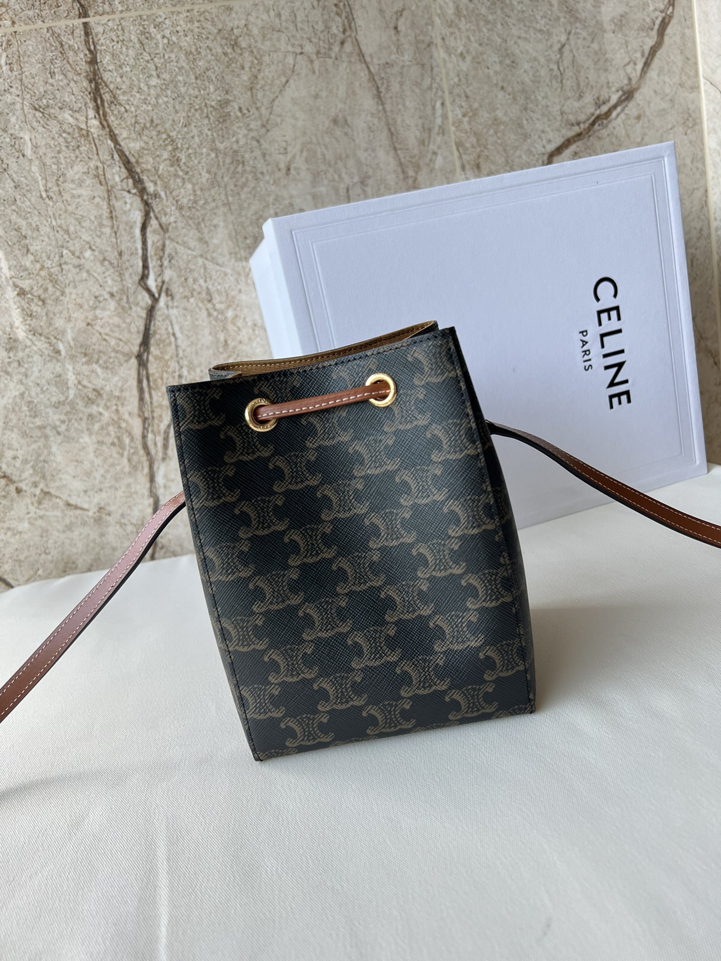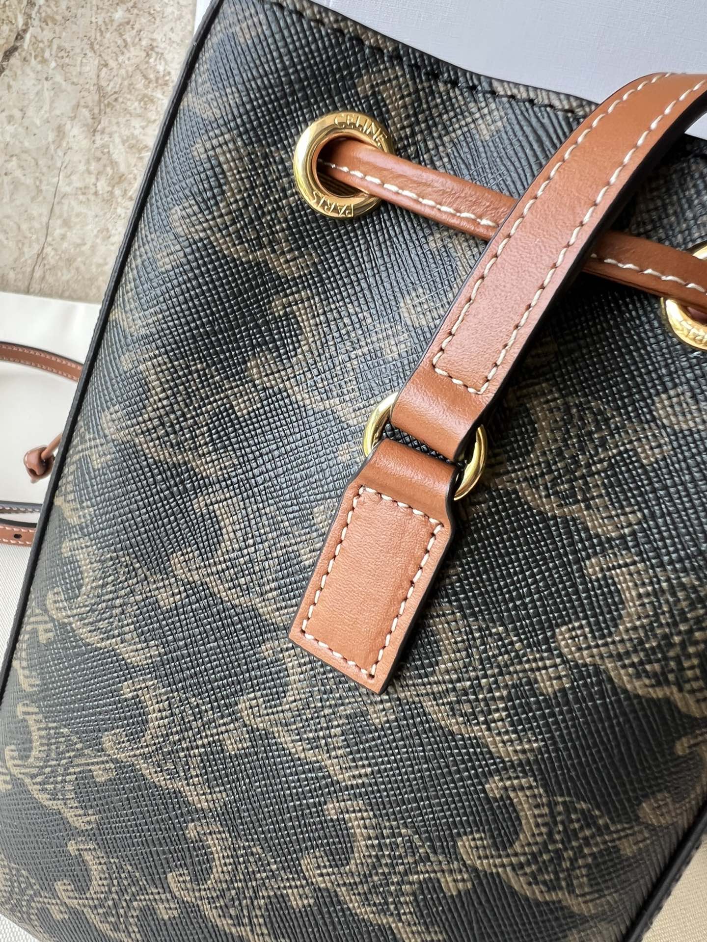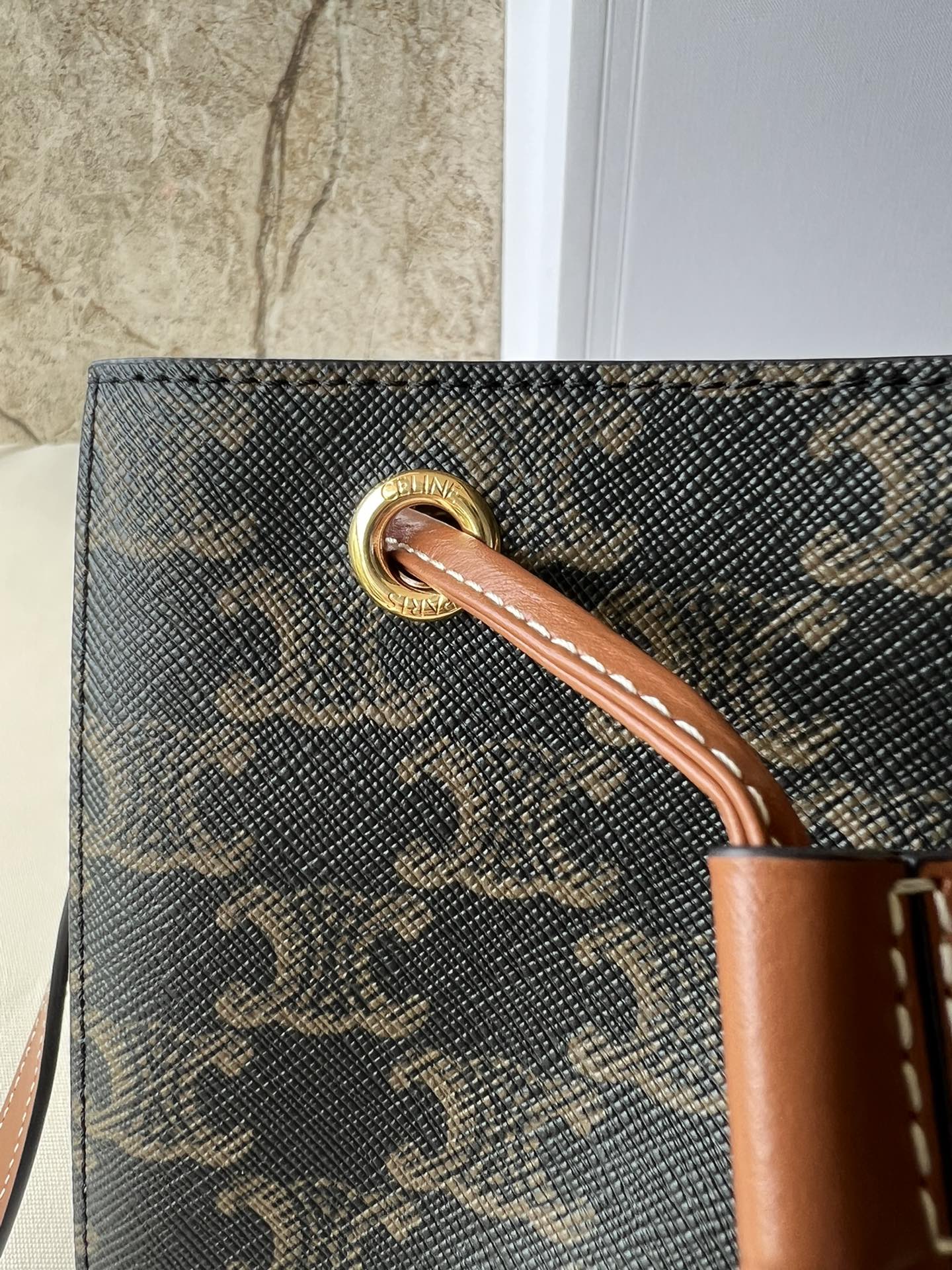 Celine CE New Shaomai Bag Material: Logo-printed canvas with cowhide leather trim and fabric lining Size: 13.5 x 17.5 x 11 cm Model Number: 10M742