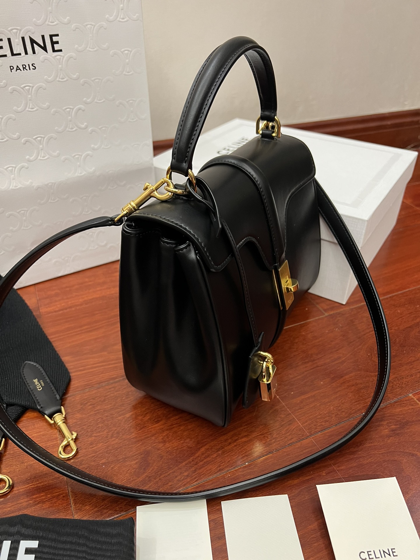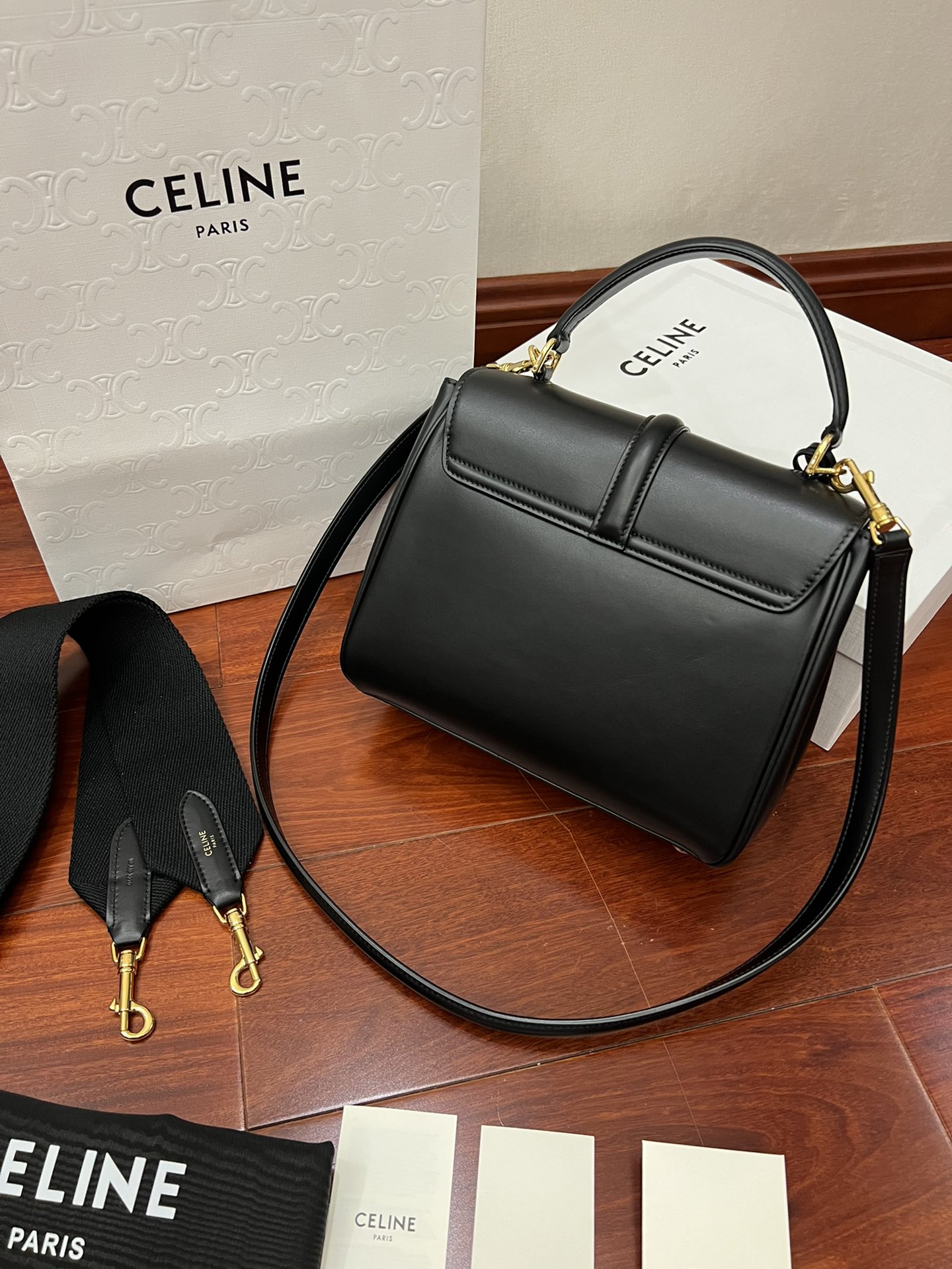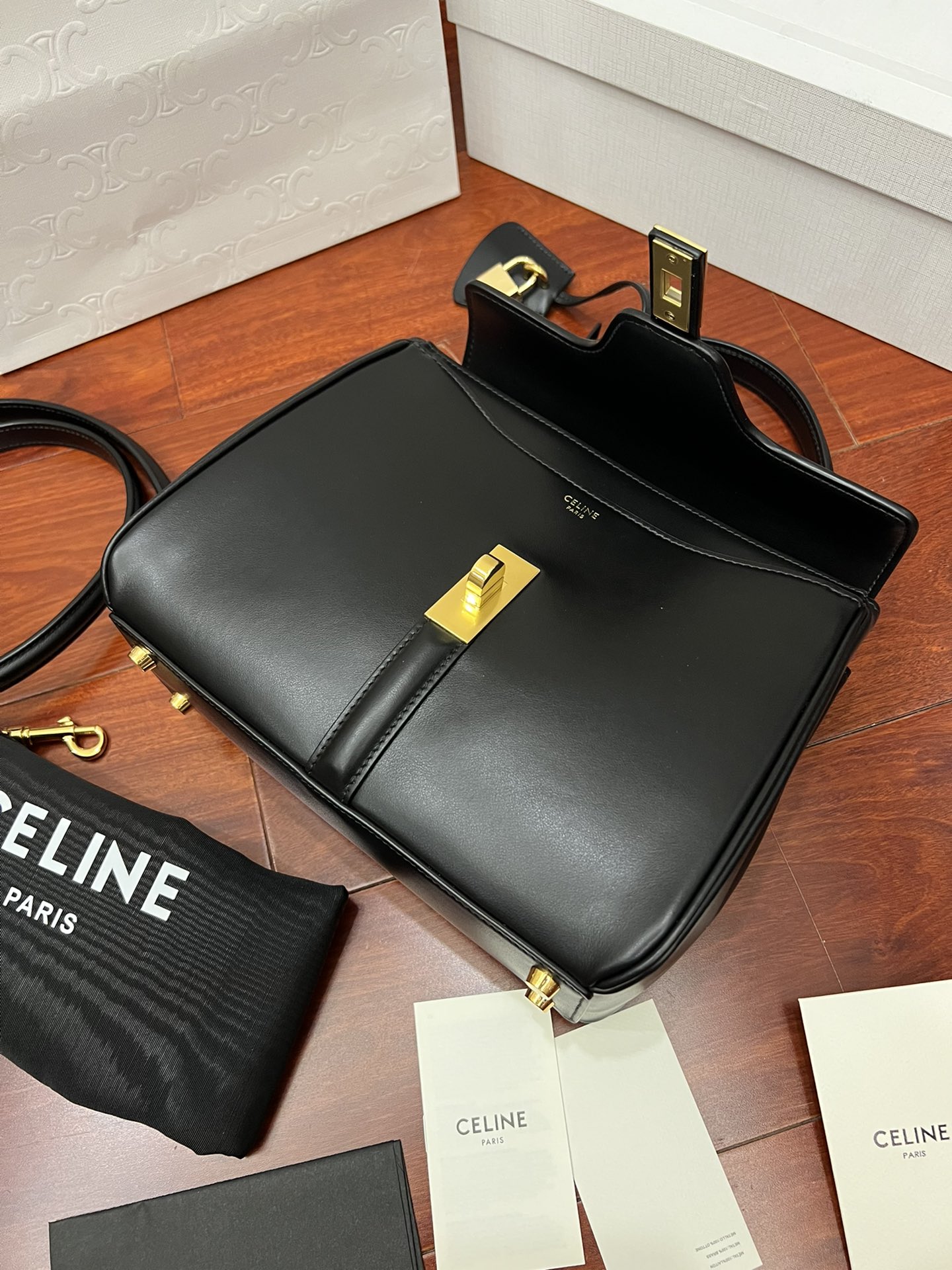 Celine Classic STRAP “16” Handbag Material: Outer and inner calfskin leather, with a soft lambskin lining Size: Small size (23 x 19 x 10.5 cm) Model Number: 183