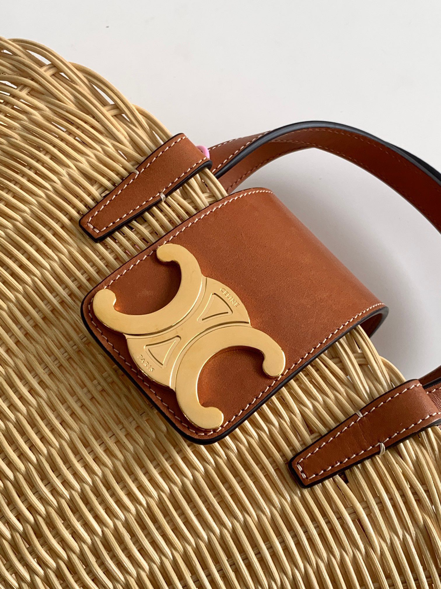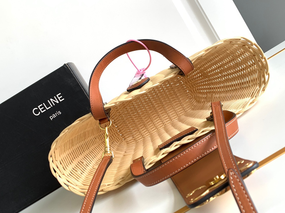 CELINE Vacation Collection “Basket Bag” 🏖 Material: Natural wicker rattan + cowhide leather Size: 32 x 14 x 7 cm Model Number: 116572
