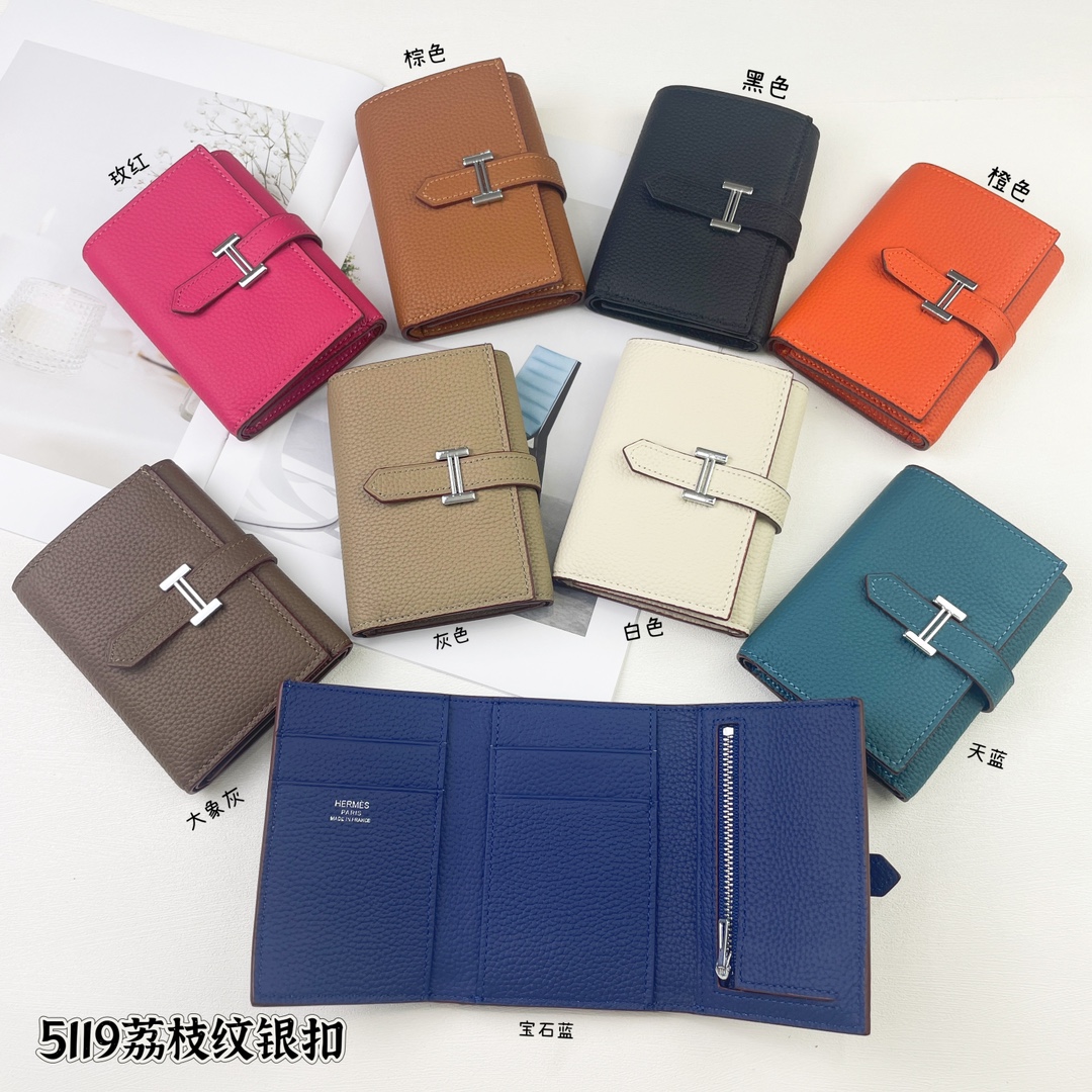 HERMÈS Bearn Mini Wallet Model: 5119 Material: First-layer Togo calfskin leather with Epsom texture Texture: Lychee grain Size: 10.8 cm × 7.5 cm × 0.4 cm